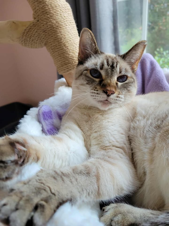 Lexi was among a group of Siamese cats that were rescued from an illegal breeder who was evicted & the group of cats were locked in a shed with no provisions during record breaking sub- zero winter temperatures. Aunt Siri, said she was the last of her group to come out of her traumatized shock symptoms.