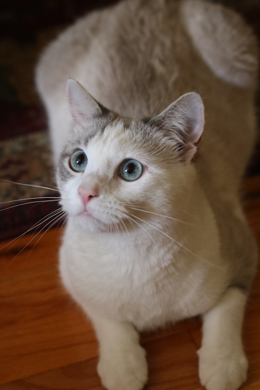 On a rainy afternoon in December of 2023, Murphy came in to our lives. We’ve all heard the saying “Everything happens for a reason”, well Colby was the happen, Murphy was the reason. Just two weeks before bringing Murphy home from the local animal shelter, we tragically lost our 10 year old Snowshoe, Colby, to a drug reaction following a dental. To say we were devastated would have been an understatement. Through tears, an unknown force pushed me to look up the local animal shelter adoptable cats. There was Murphy, or “Newt” as he was called by the shelter staff, and his big blue eyes. I guess you could say it was the Eye(s) of Newt that got me, because his little face haunted us. It had only been days. How could we even consider moving on?